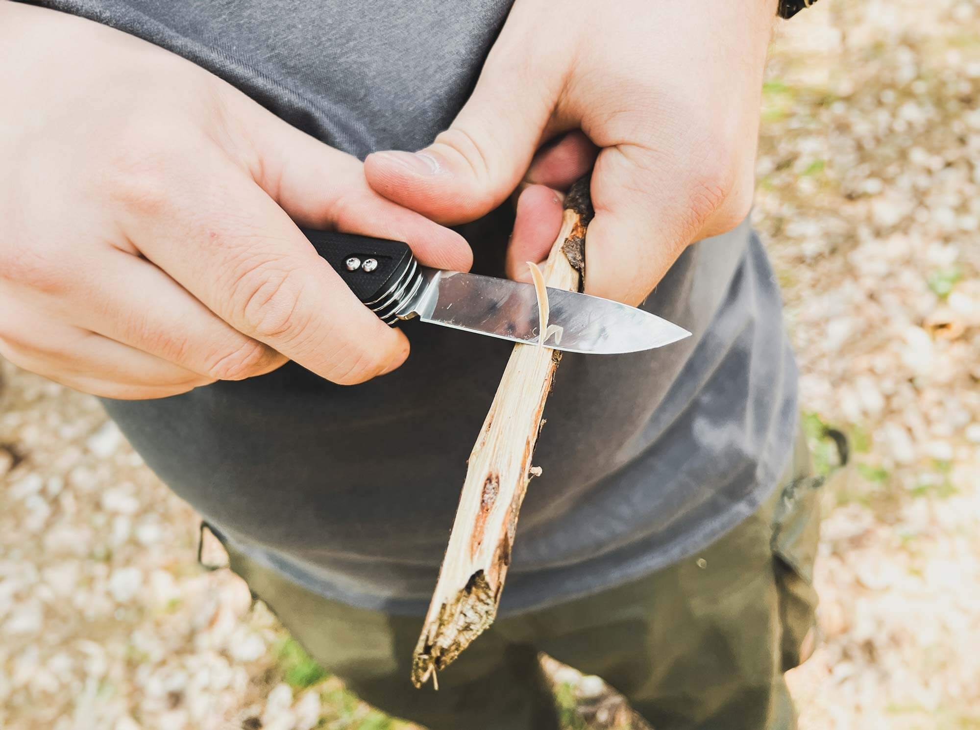 Ascuns discret în cele două plăsele din G10 negre, un scobitor din plastic asigură igiena necesară în aer liber. Penseta de pe partea opusă îndepărtează spinii, așchiile și altele asemenea.