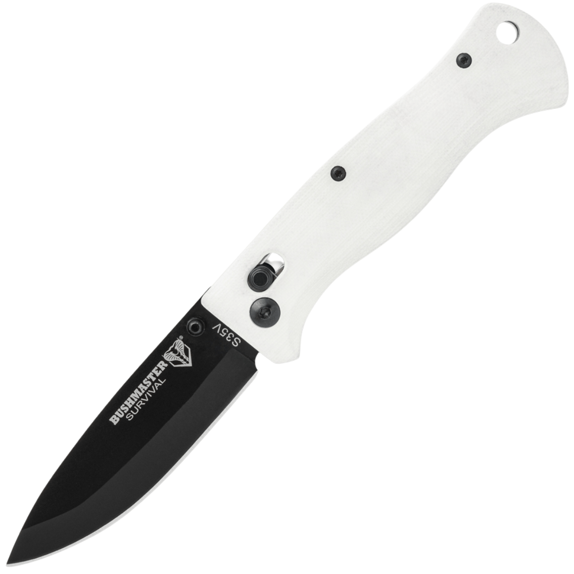 Mânerul este fabricat din G10 alb, un material compozit din fibră de sticlă și rășină sintetică. Cu textura sa subtilă, G10 oferă o senzație plăcută în mână și o priză excelentă.