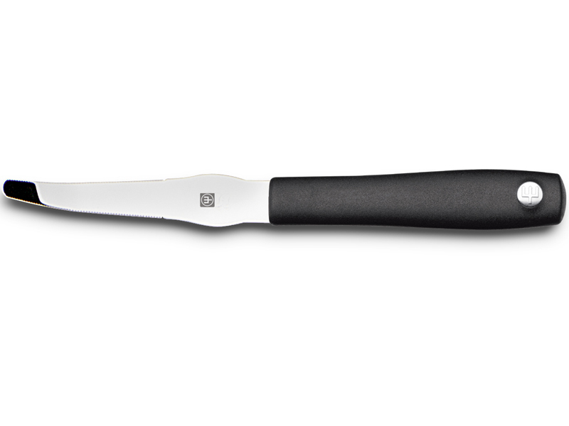 Cuțitul de grapefruit Wüsthof Silverpoint cu o lamă de oțel inoxidabil în formă specială care se extinde până la mijlocul mânerului din plastic negru. Facut in Germania.