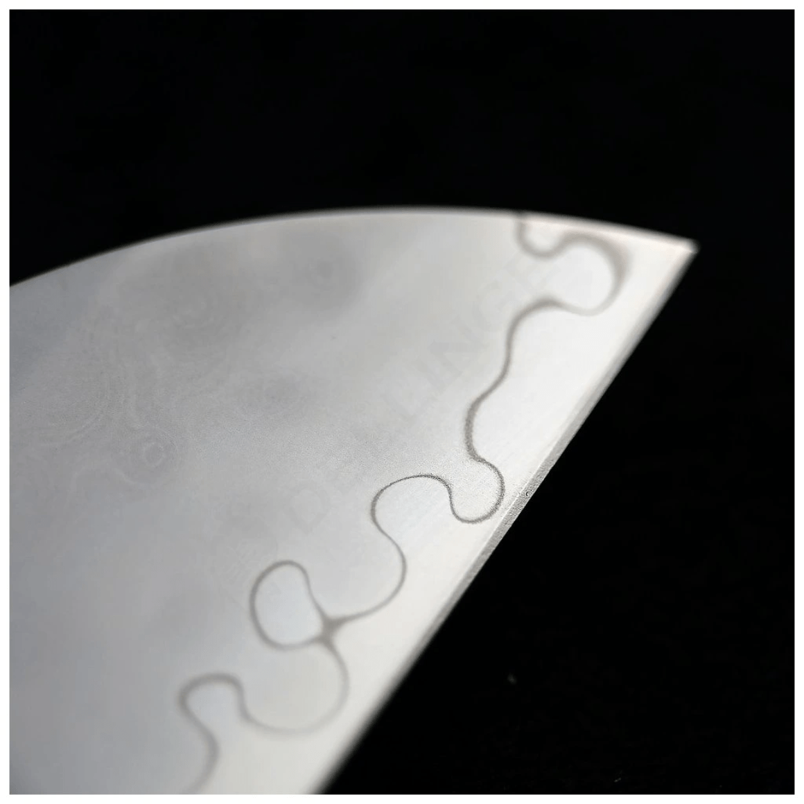 Acesta este echipat cu o lamă foarte ascuțită, realizată din oțel japonez AUS-10 Sanmai, care este foarte bine protejat împotriva coroziunii. Oțelul japonez AUS-10 menține o ascuțire de lungă durată la o duritate de R60 +/- 1 pe scara Rockwell. Miezul din oțel japonez AUS-10 este încapsulat între 6 straturi de 2 oțeluri damascene inoxidabile, oferind o durabilitate și rezistență excepționale. În plus, lama este ferm asigurată cu un sistem de blocare Liner-lock împotriva închiderii spontane.