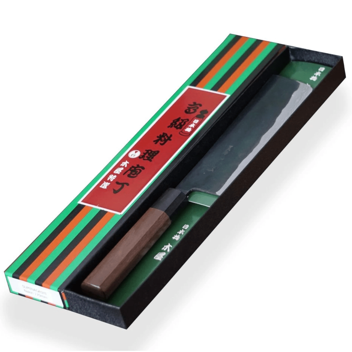 Cuțitele KIYA Suminagashi Black sunt realizate folosind tehnica tradițională de forjare Echizen. Încălzirea cu cărbune și lemn de pin, urmată de întărire, insuflă viață oțelului. Astfel se creează un cuțit cu un model marmorat, având 11 straturi de oțel damasc, cu un miez ascuțit din oțel japonez de calitate specială Takefu V (trebuie curățat, uscat și uns după fiecare utilizare).
