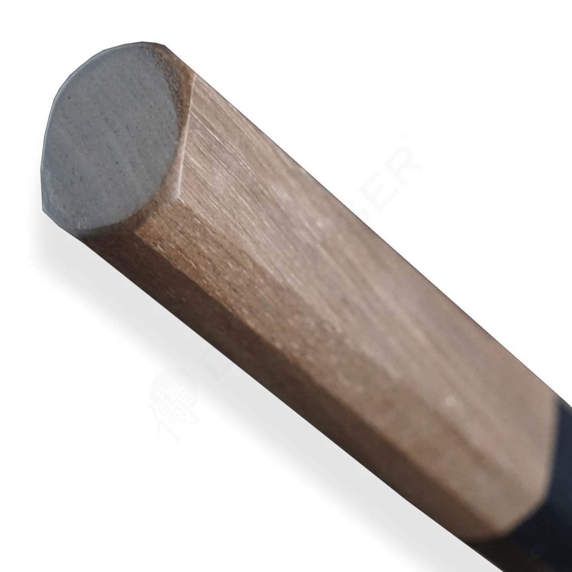 Mânerul octogonal este realizat din lemn de santal. Este întotdeauna lustruit manual cu grijă, ergonomic și proiectat pentru un control excelent al mâinii. Acest cuțit este potrivit atât pentru utilizatorii dreptaci, cât și pentru cei stângaci.