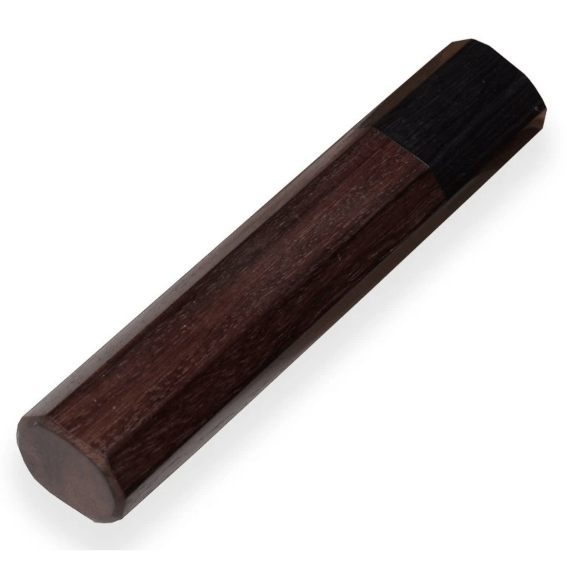 Mânerul octogonal este realizat din lemn de santal. Este întotdeauna lustruit manual cu grijă, ergonomic și proiectat pentru un control excelent al mâinii. Acest cuțit este potrivit pentru utilizare atât cu mâna dreaptă, cât și cu mâna stângă.