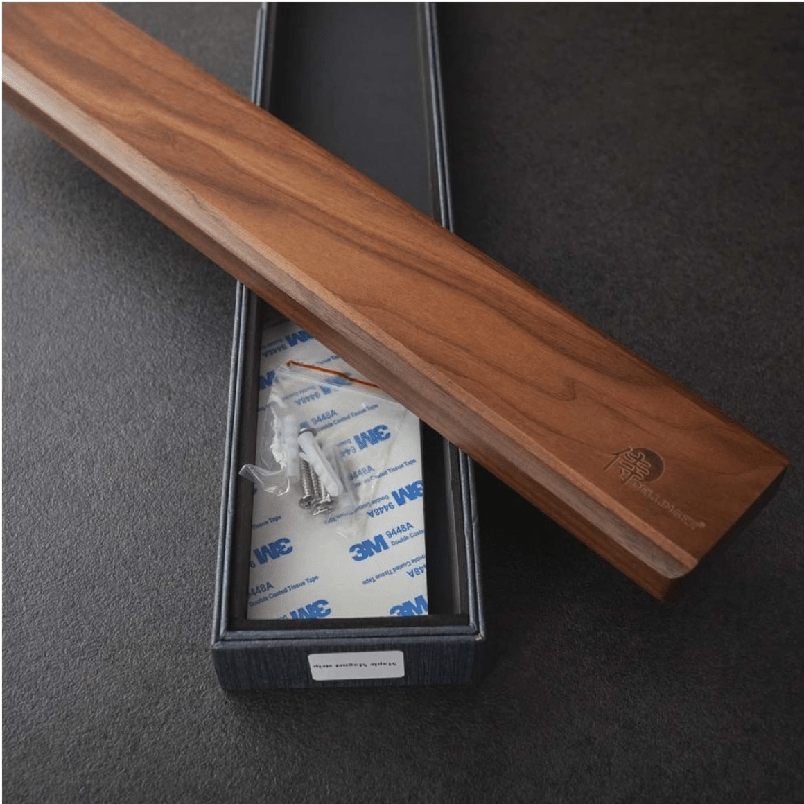 Bara magnetică din lemn DELLINGER XZ-L0109 este o bandă elegantă pentru cuțite, realizată din nuc, cu magneți puternici pentru o fixare sigură.
