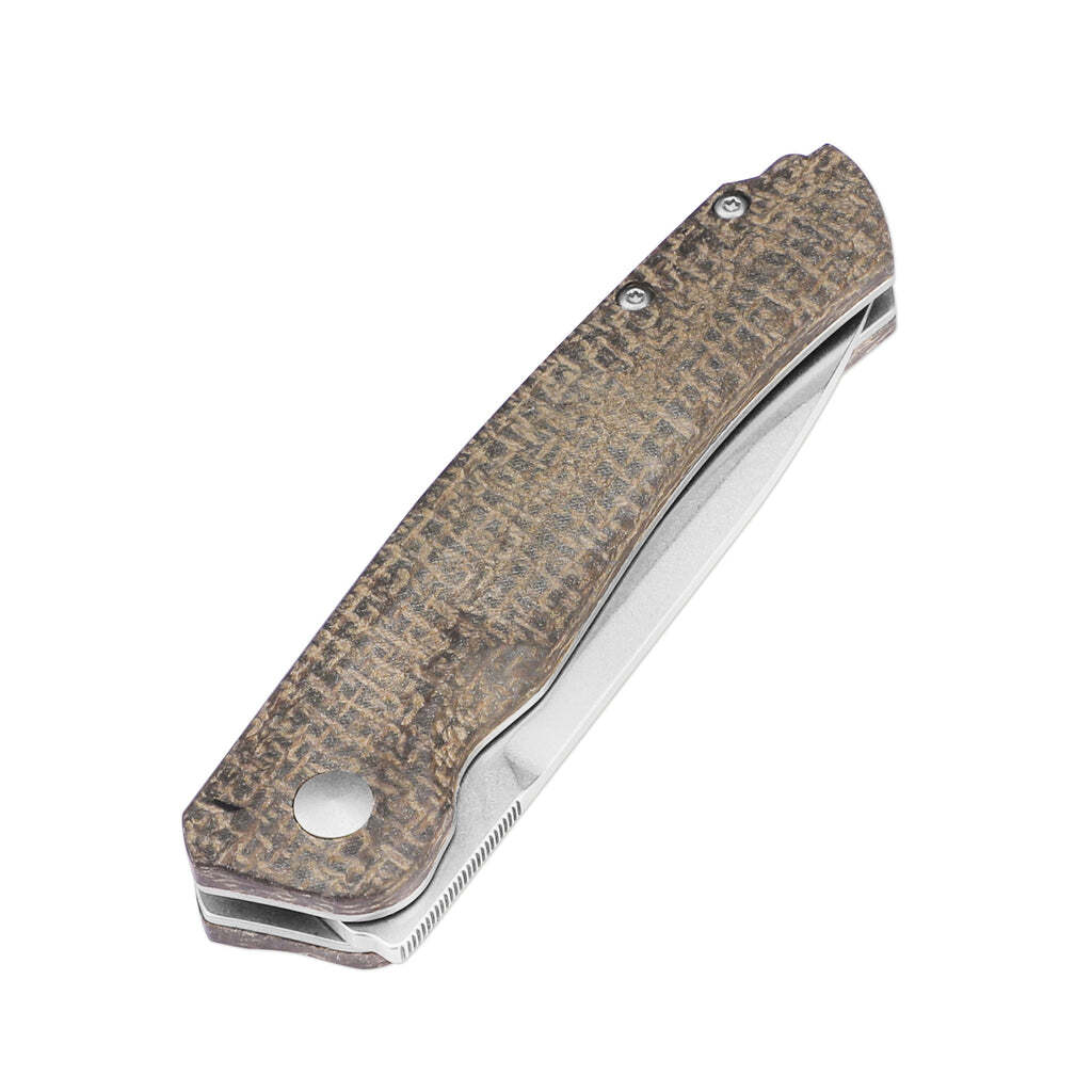Lama este realizată din oțel premium 154CM. Se deschide cu un front flipper și este ținută în poziție deschisă de un linerlock. Mânerul simplu este realizat din micarta rezistentă. Cuțitul este echipat cu o clemă pentru a fi transportat în buzunar.