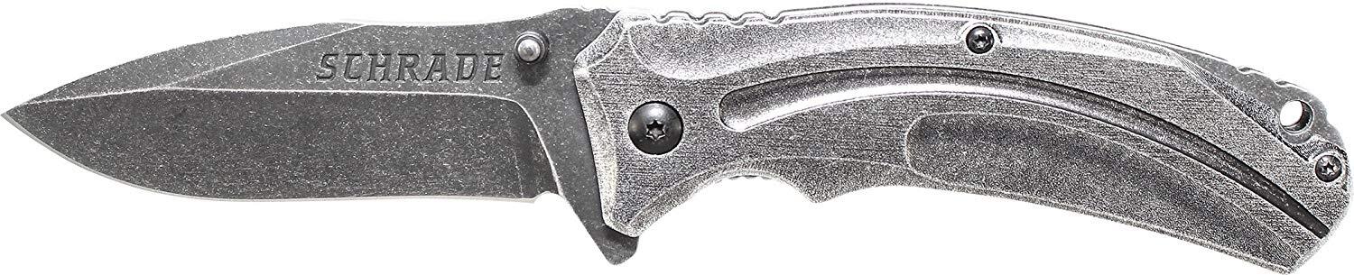 Cuțitul rabatabil integral metalic Schrade cu finisaj Stonewash este potrivit pentru utilizarea de zi cu zi. Lama este realizată din oțel cu conținut ridicat de carbon 9Cr18MoV. Cuțitul poate fi deschis cu un știft dublu față sau Flipper. Mânerul este realizat din oțel inoxidabil cu mânere din aluminiu. Cu clemă de buzunar.