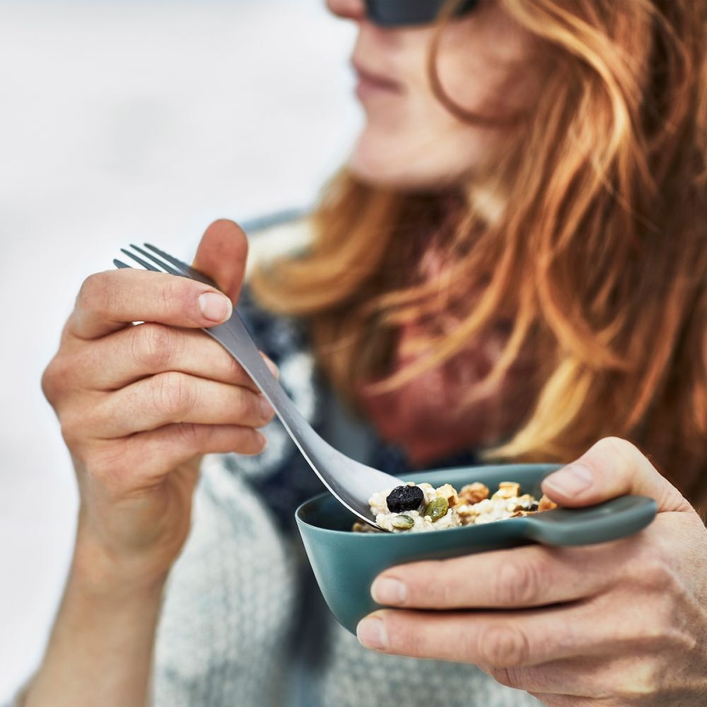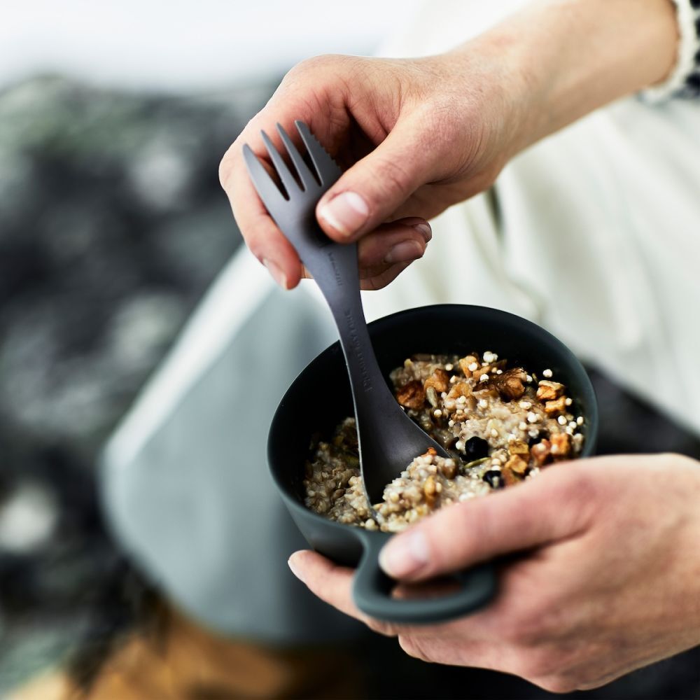 Un clasic scandinav. Swedish Kåsa de la Light My Fire este o reinterpretare modernă a acestui instrument de exterior atemporal. Acest accesoriu ingenios este perfect pentru cei care doresc să economisească spațiu în echipamentul de camping, deoarece poate fi folosit atât ca cană de călătorie, cât și ca bol pentru mâncare. Dispune de linii de măsurare pe interior, care indică volumul conținutului în ml și oz. Este sigur pentru utilizare în cuptorul cu microunde și mașina de spălat vase. Fabricat din materiale bio și produs în Suedia.