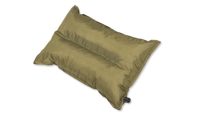 Pernă de camping ușoară umflătoare care ocupă puțin spațiu după pliere. Înlocuiește perfect un prosop sau un sacou pliat și oferă 100 de ori mai mult confort. După deșurubarea supapei, perna se umple cu aer. De asemenea, poate fi umflat ca o saltea obișnuită. Robinetul trebuie închis după umplerea aerului. Dacă doriți să-l pliați suficient pentru a-l deșuruba, întoarceți-l, închideți-l și fixați-l cu două curele. Perna este ambalată într-un sac de poliester cu o curea.
