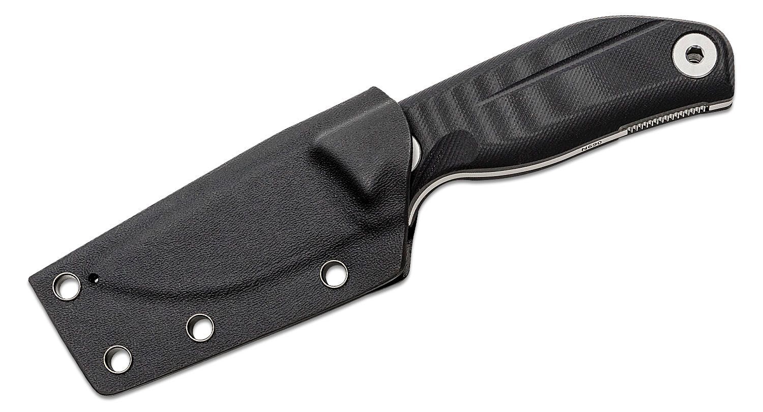 Mânerul dispune de plăsele netede și rotunjite din G10 sau Micarta, cu modele și caneluri intricate, asigurând o priză sigură și extrem de confortabilă în timpul utilizării prelungite. Construcția full tang garantează rezistența, în timp ce șuruburile mari cu orificii de trecere nu doar că îmbunătățesc integritatea structurală, dar permit și o demontare ușoară pe teren. În funcție de alegerea dumneavoastră, CVX-80 vine echipat fie cu o teacă din Kydex pentru modelele G10, fie cu un toc din piele pentru versiunile Micarta, asigurând portabilitate sigură și elegantă.