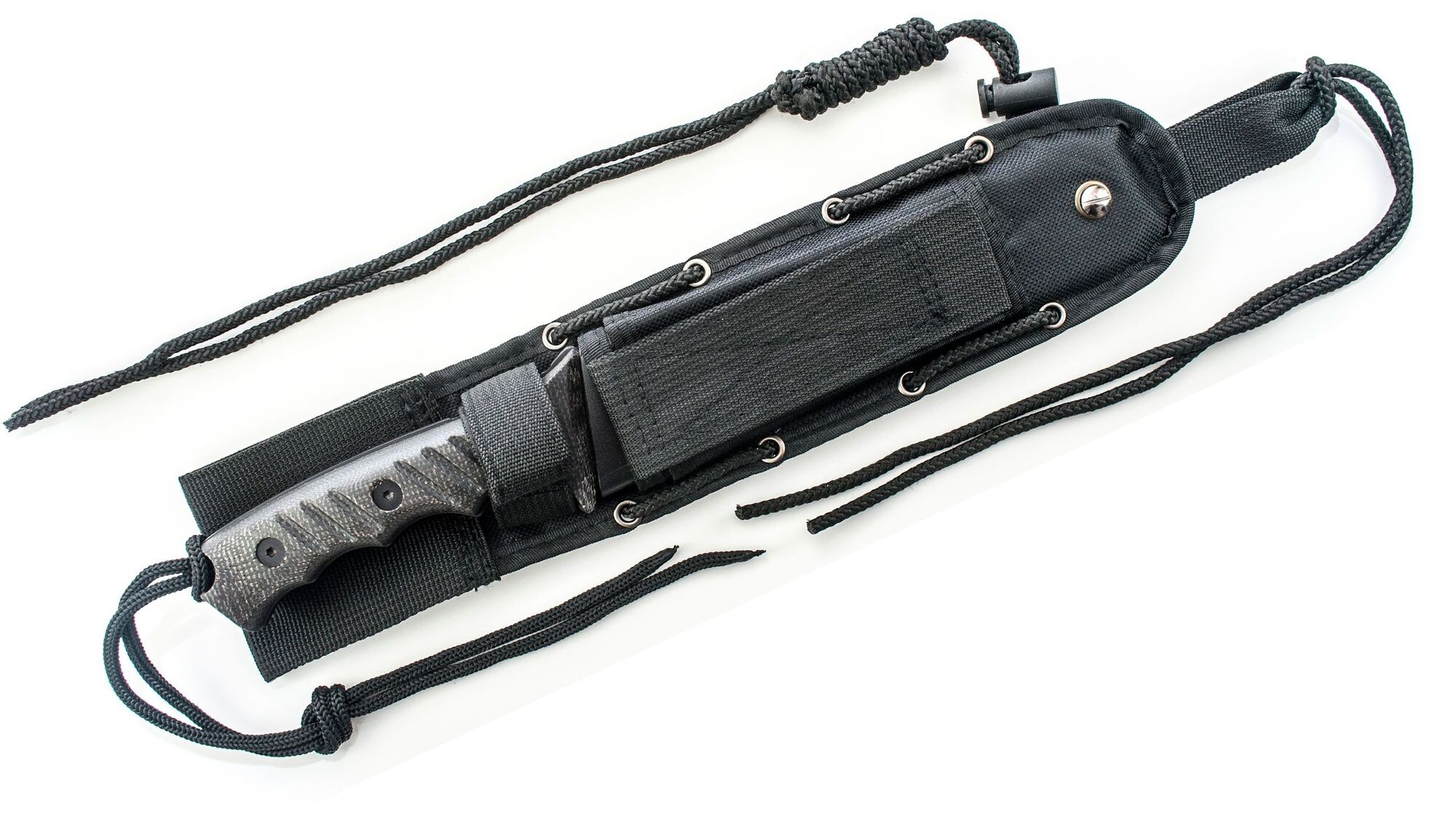 Cuțit de supraviețuire Schrade Extreme Survival F3 cu o lamă fixă, cu o suprafață neagră și o serrare parțială din oțel inoxidabil 7Cr17 cu conținut ridicat de carbon. Mânerul este confecționat din Micarta neagră canelată cu o gaură pentru o sfoară. Vine cu o carcasă din nylon.