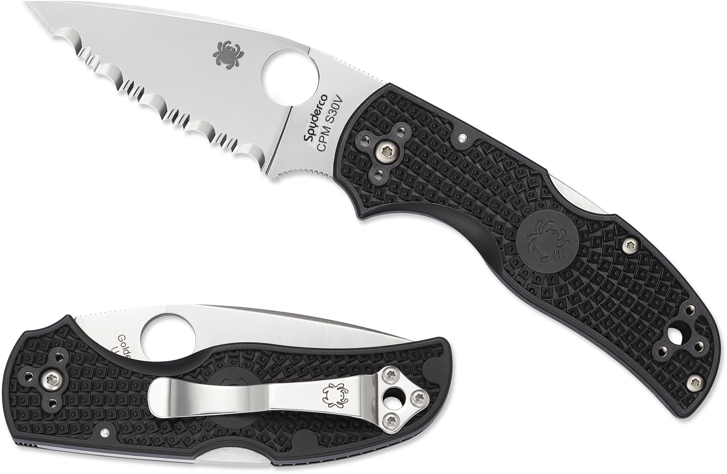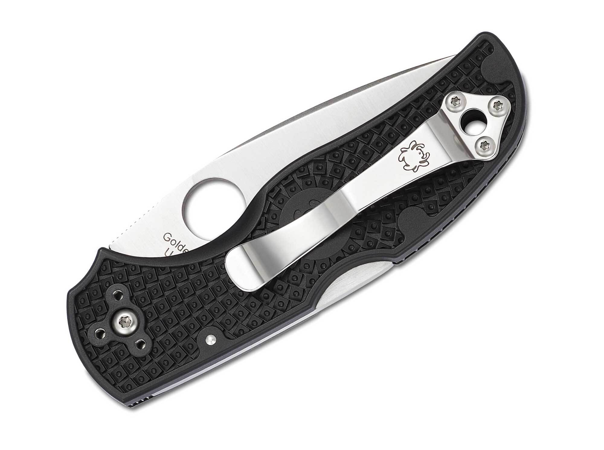 Lama cuțitului este realizată din oțel CPM-S35VN. Este retras de marginea superioară a lamei, ceea ce ajută la o putere mai mare de tăiere. Este dințat pe toată lungimea muchiei de tăiere, aproape până la vârf. Se deschide cu o gaură rotundă pe lamă, atât de caracteristică Spyderco. Când este deschis, lama blochează blocarea din spate - Blocare spate. Mânerul este confecționat din material negru FRN. Are o formă ușoară cu un finisaj fin antiderapant. Pentru o rezistență mai mare, mânerele sunt căptușite cu inserții de oțel încastrate. Clemă de buzunar este din oțel, lucios și cu patru poziții, ceea ce înseamnă că aveți patru opțiuni de montare. Gaura de pe mâner permite utilizarea unei corzi.