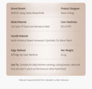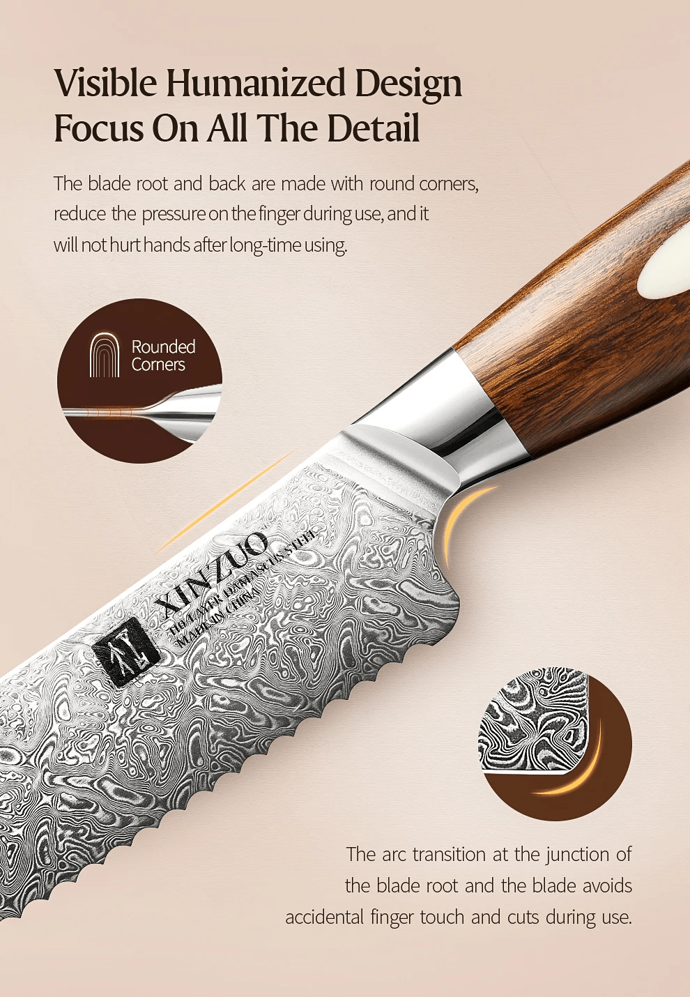 Cuțitul de pâine XINZUO B46D-MB îmbină precizia, durabilitatea și eleganța, fiind instrumentul perfect pentru a tăia fără efort toate tipurile de pâine și produse de patiserie.